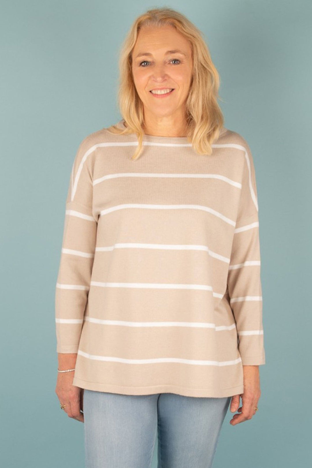 Amazing Woman Stina Beige Marl Cream Roll Neck Stripe Jumper